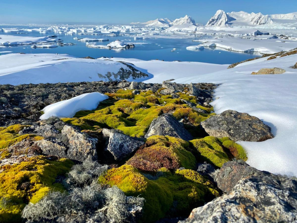 Антарктида сизелерлек яшелләнә башлаган, бу бигрәк тә иярченнәр төшергән сурәтләрдә ачык күренә. Мәңгелек бозлыклар кими, үсемлекләр үсә башлый. Соңгы 40 елда яшел мәйданнар ун тапкырга арткан. Хәзер үсемлекләрнең төп өлешен Антарктиканың экстремаль шартларында яшәргә сәләтле мүкләр тәшкил итә.
